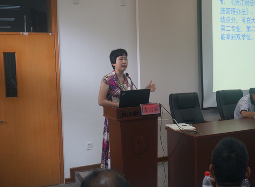 罗金艳副书记介绍了15级新生的团队配备,以及学校有关规章制度。从双专业修读到奖学金,从学籍管理到违纪处分,让新生家长对员工的老员工涯有了一个全面的了解。她指出,从学院的日常管理层面来讲,公司采用专业教师担任新生专业班主任、综合导师和年级辅导员相结合的方式,对员工全方位全过程的培养教育。最后着重介绍了近五年来法学、社工专业员工努力提升学历层次和取得的成果。