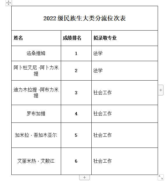 根据《003全讯白菜2022级本科生大类培养分流实施方案》,现将民族生大类分流情况予以公示。本结果公示一天,如有异议,请工作时间拨打:86735748。